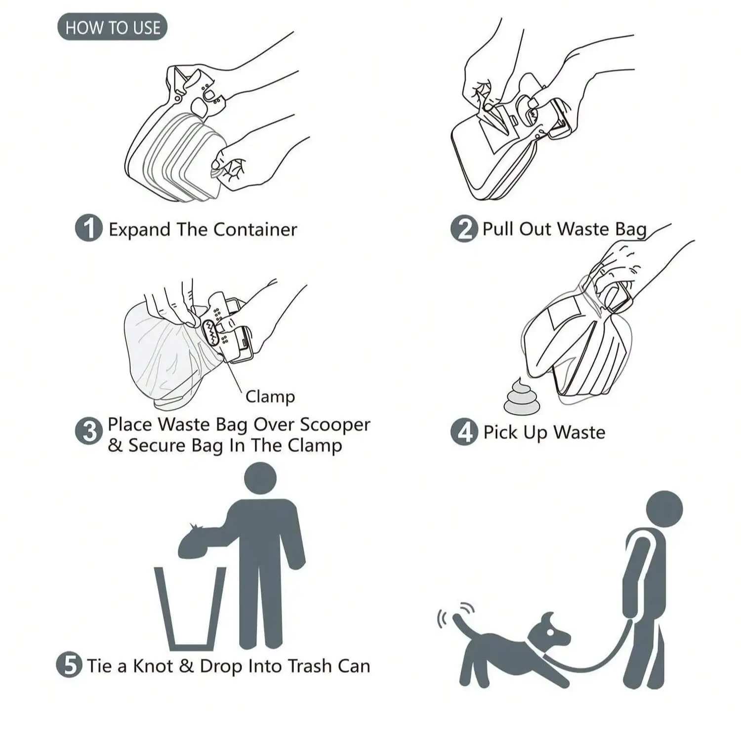 Pooper Scooper, Portable and Handheld Size for Walking Large and Small Dogs Outside Yard or Travel Outdoors, Pup Poop Scoop with Container and 10pcs Pet Waste Bag Attachment